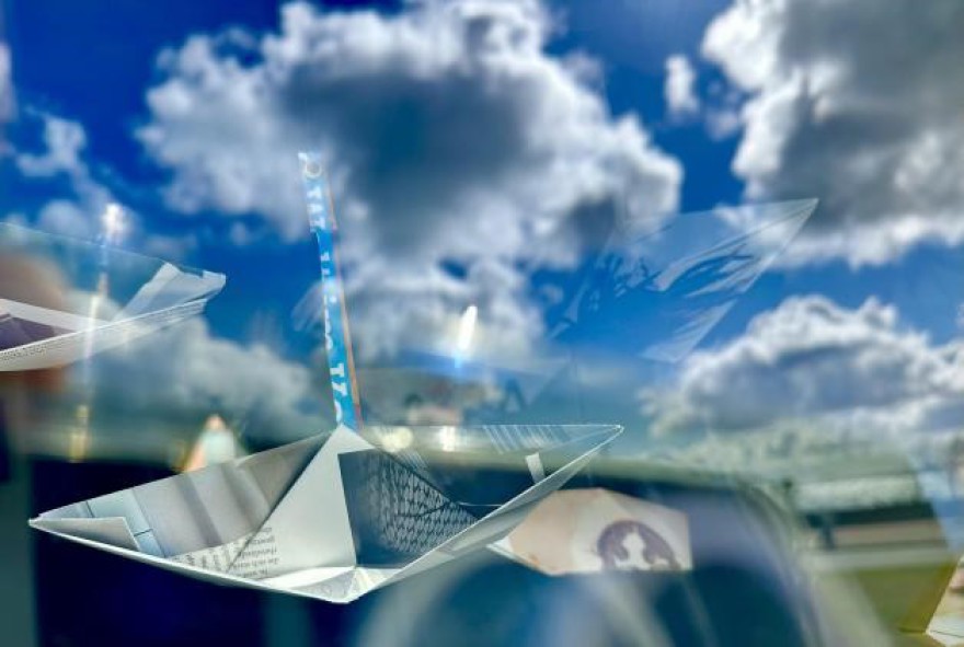 Das alte Flaggenhäuschen der Wyker Dampfschiffs-Reederei W.D.R. am Fährhafen in Wyk wird schnell übersehen. Es ist nur ein schmuckloser Backsteinbau mit vermoosten Dachziegeln. Doch wer einen Blick durch die Fenster wagt, findet sich in einer anderen Welt wieder: Unzählige bunte Papierschiffchen baumeln in verschiedenen Höhen an zarten Nylonfäden, bewegt durch einen leichten Luftzug, der nie ganz aufhört, obwohl die Tür verschlossen ist und man nur von außen hineinsehen kann. Es ist keine herkömmliche Kunstinstallation oder gar Ausstellung, kein Schild weist darauf hin. Wer vorbeikommt, tut das meist zufällig - und genau so ist es gewollt. Das Projekt heißt „Geisterschiffe - Made on Föhr“. Inspiriert wurde Schöpfer Andreas Petzold (74) von sagenumwobenen Geisterschiffen wie der „Mary Celeste“ oder dem „Fliegenden Holländer.“