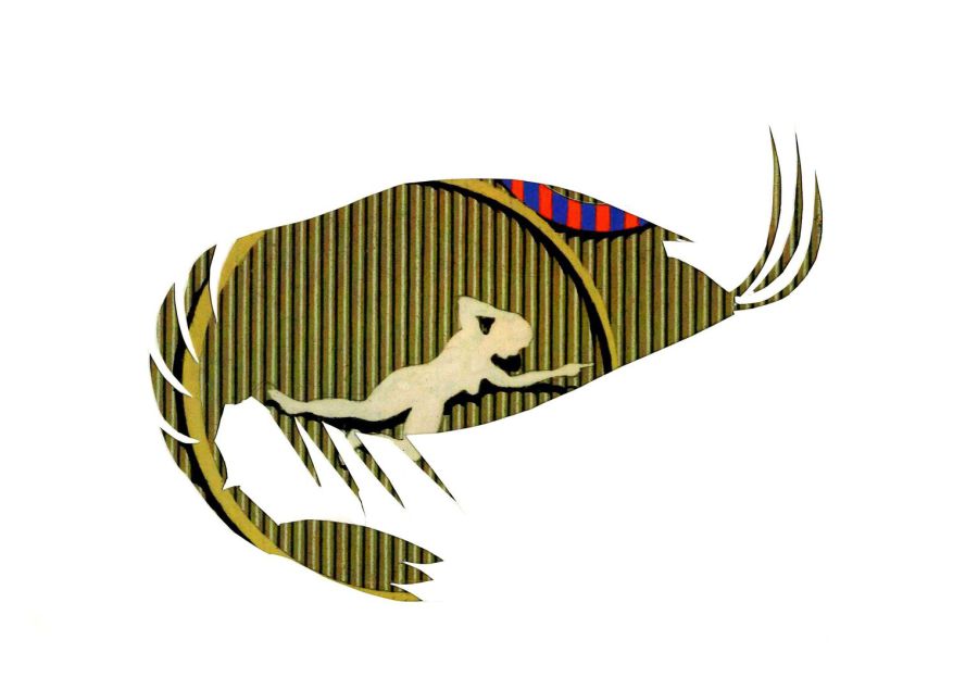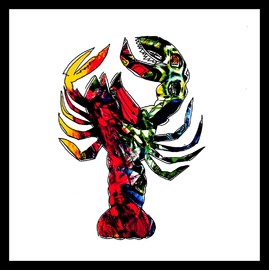 Und um gleich allen Fragenden zu entgegnen. Die Namensnennung ist rein zufällig, der Bezug, der im Gehirn des Betrachters hergestellt wird, ist allerdings gewollt, unterliegt dabei keinem Urheberrecht. Außer meinem gestalterischen mittels meiner Farbpalette! Denn auch Krebstiere ändern bei der küchentechnischen Verarbeitung ihre Farbe von Dunkelbraun, Grünlich-grau, Blau, Gelb, Oliv oder Braun in Rot. Der rote Farbstoff Astaxanthin wird dabei durch Hitze freigesetzt.