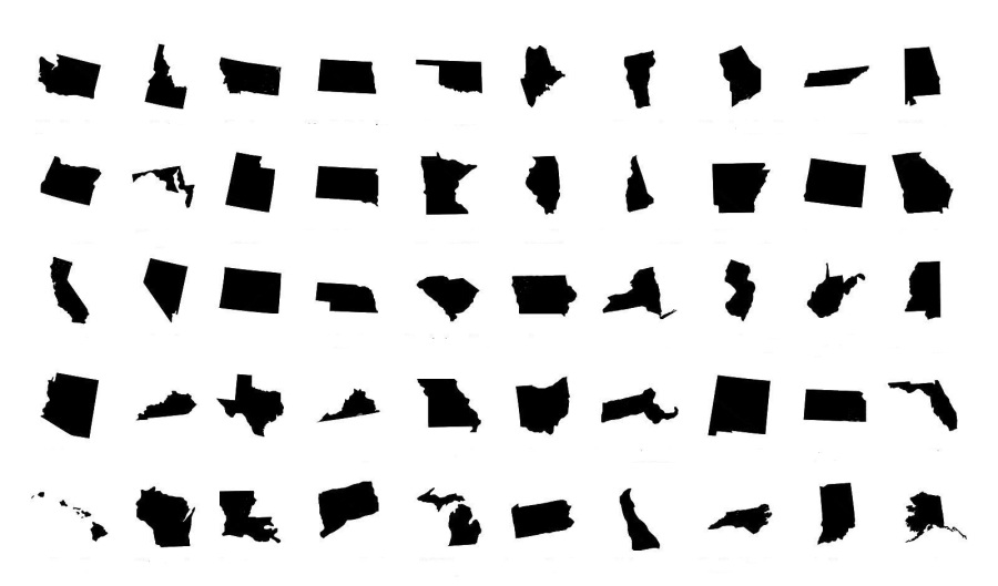 Auf Wunsch wird ein Staat farbig hervorgehoben oder gestrichen.