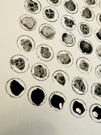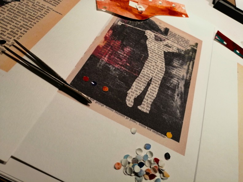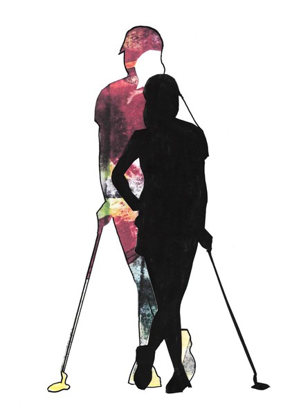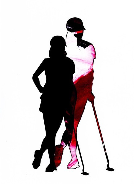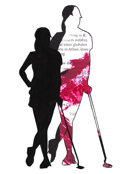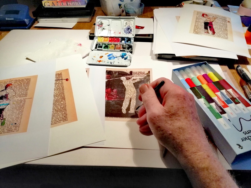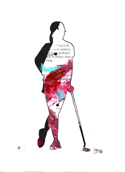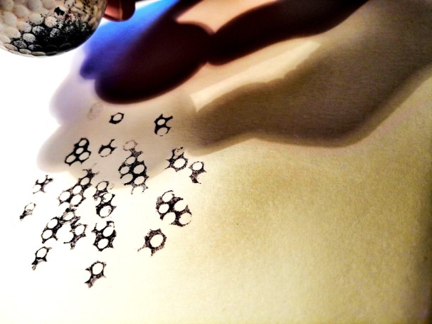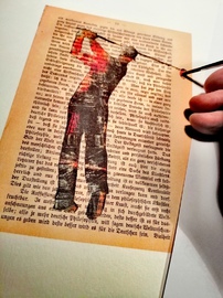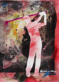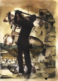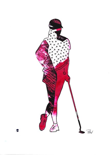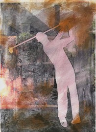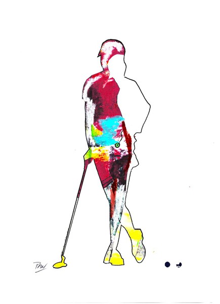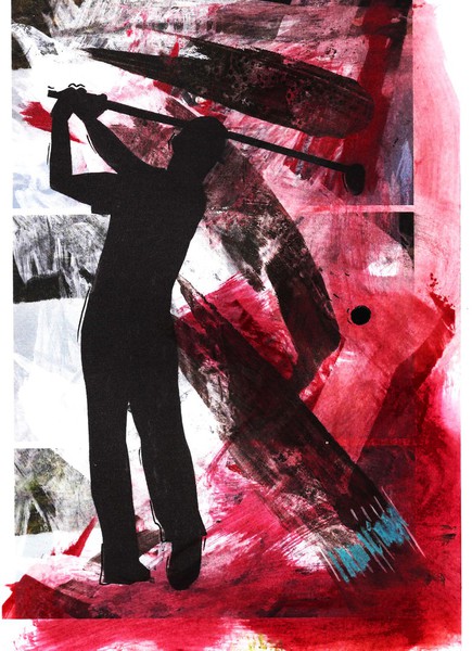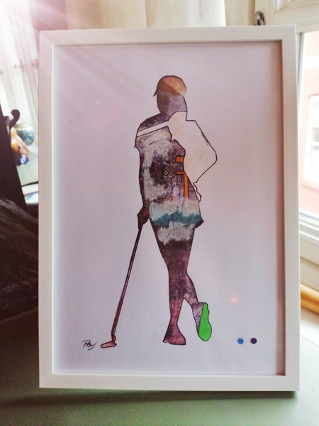 Einer der schönsten Golfplätze Deutschlands liegt vor meiner Haustür auf Föhr und ich kenne nur die Clubgastronomie, wenn ich als Gast den Blick über die Greens schweifen lassen kann. Schön ist es hier. Meine Kontakte zum Golf liegen aber eher beim Cross Golf Platz in Oevenum, da meine Schwungtechnik und mein Körper keinesfalls harmonieren. Und fliegende Grasnarben weniger sinnvoll erscheinen als eine saubere Flugbahn eines Golfballes. Hier und da habe ich immer wieder Szene-Fotos gemacht. Einige davon sind zu Skizzen zeichnerisch umgesetzt und als Vorlage zur weitergehenden Arbeit mittels positiver und negativer Silhouetten umfunktioniert worden. Als ergänzendes Arbeitsmittel sind zwischenzeitlich bewußt Golfbälle und Golf-Tees in kreativen Umsetzung als Werkzeug hinzugekommen.