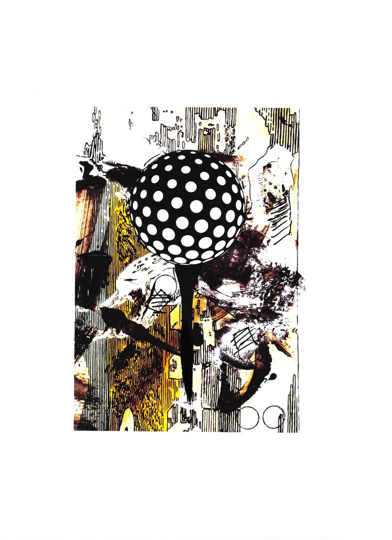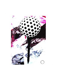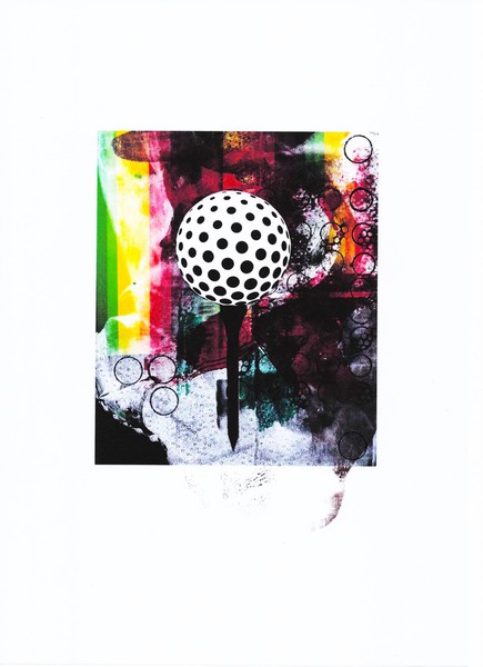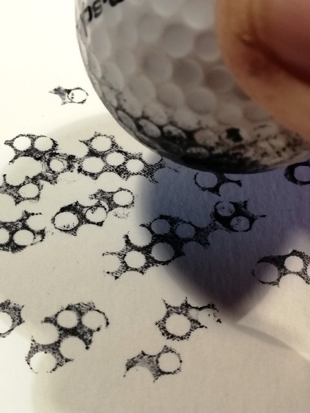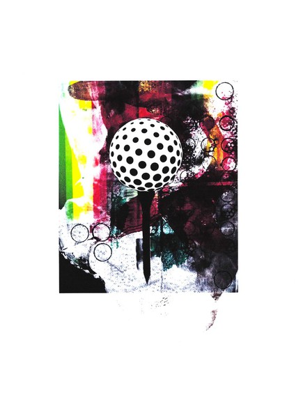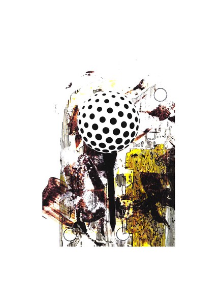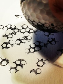 An diesen Beispielen kann man die Verwendung von Golfbällen und Tees als grafisches Druck- und Gestaltungsmittel sehen.