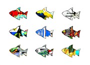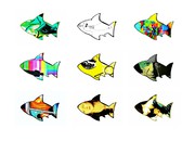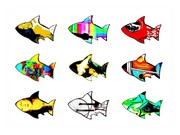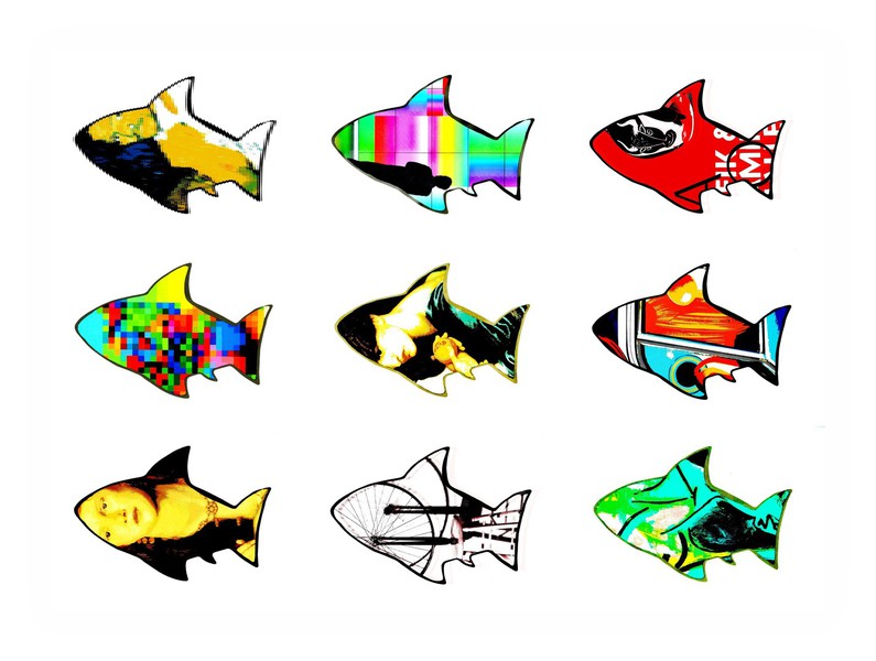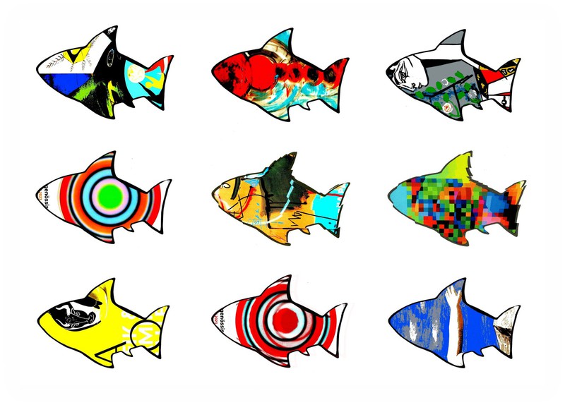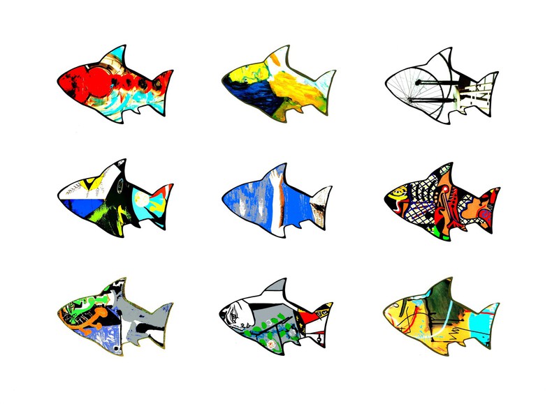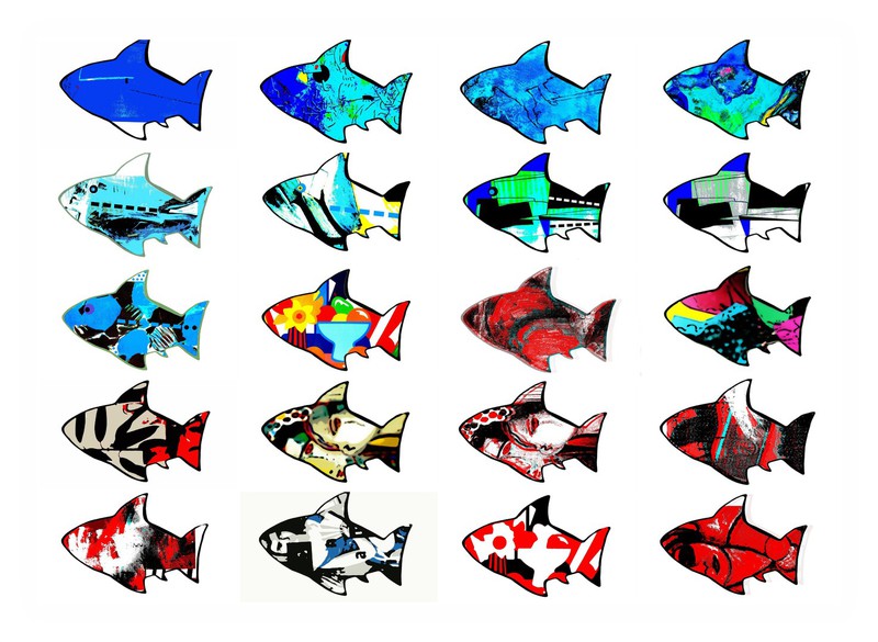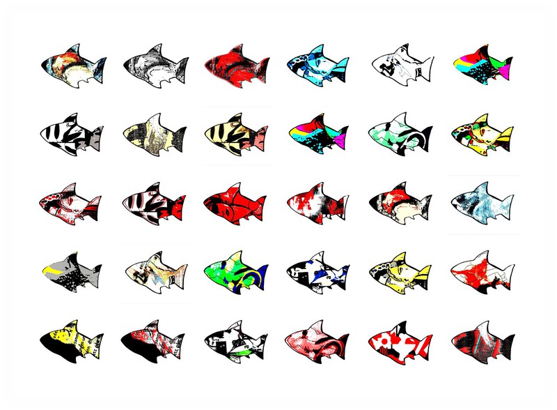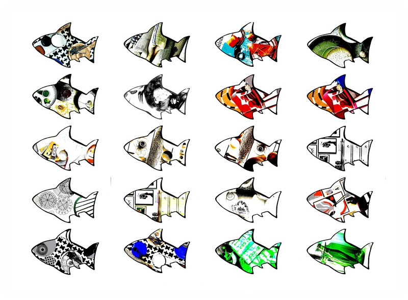 Von der farbigen Arbeit FISH 1 bis FISH 4 (siehe unten) ist nur ein Fisch der Neunerserie 3D-animiert. Acht, der neun Fische, haben kein 3D-Pendant. Das mag den einen oder anderen nicht stören, weil die Arbeit sowieso zusagt, ästhetisch schön erscheint und die Frage des Unvollständseins sich nicht stellt. Für alle anderen halte ich, weil mein kreatives und künstlerisches Dogma Teilhabe, Partizipation und Kommunikation ist, eine spielerische Alternative bereit, die mittelfristig das Bild ergänzt, verändert und auch den kommunikativen Prozess über die Arbeit an der Wand wach hält.