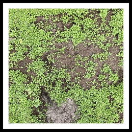 Grundlage der öffentlichen Inszenierung oder präziser formuliert, die künstlerische Idee, ist ein schwarzes Quadrat als Hommage an den Künstler Kasimir Malewitsch, der am 15.05.2025 seinen 90ten Todestag hatte. Mit Mutterboden „grundiert“ wächst in den kommenden Wochen und Monaten ein Bild aus Wildblumensamen, die gerade in der warmen Frühlingssonne aufgehen und verändern ein formal schwarzes Quadrat in ein farbiges Etwas. Ein Kunstwerk vielleicht. Aktuell ist der farbliche Zustand grün. Die Wachstumsphase passt sich naturgemäß dem aufkommenden Frühling an und der Sommer wird hoffentlich bis in den Herbst hinein sein Nötigstes tun, um der Kunst Vorschub zu leisten.